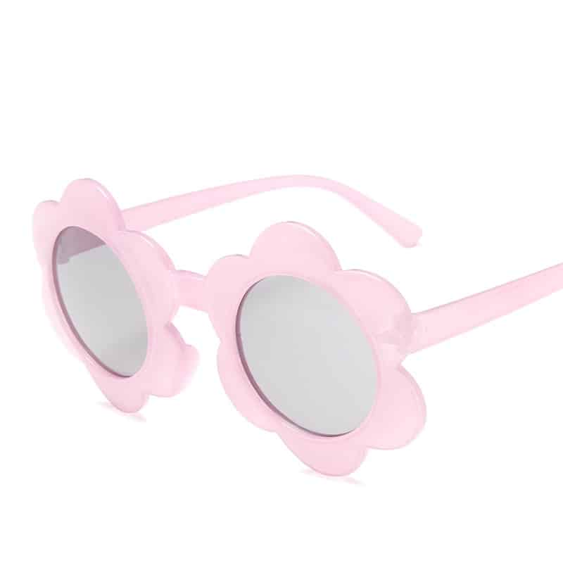 Modieuze roze bloemenzonnebril voor meisjes, gedragen door een meisje