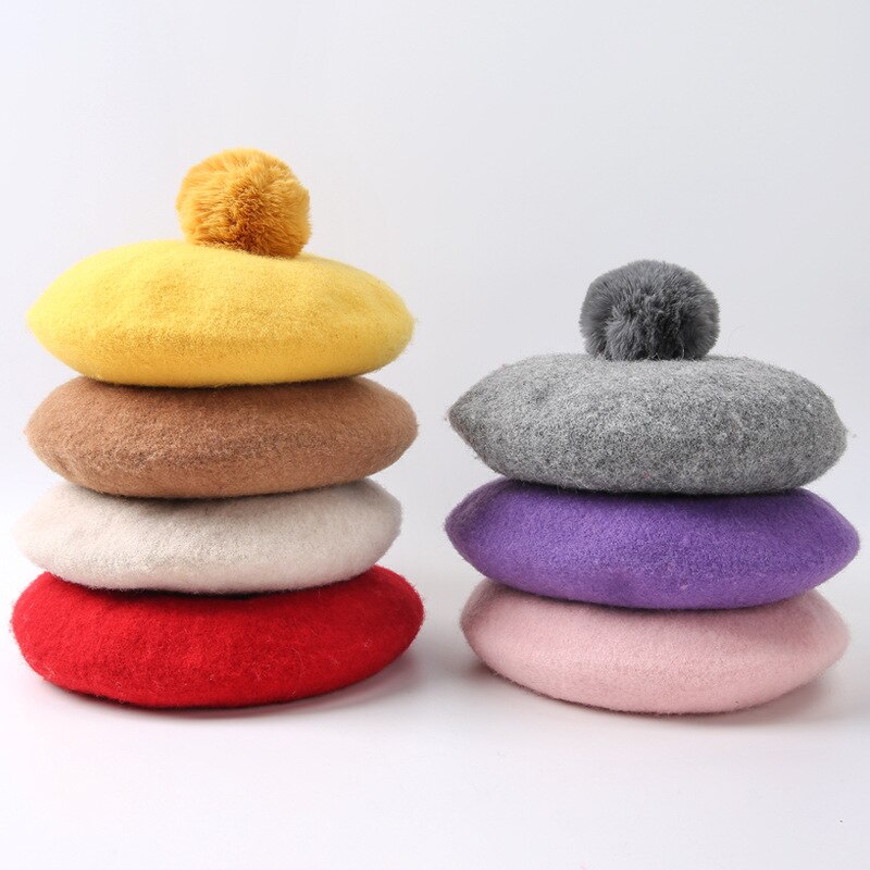 Modieuze baret met pompon voor meisjes, verschillende kleuren