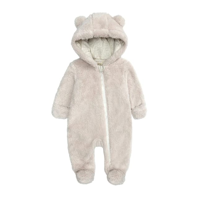 Het pilotenpak is een comfortabel, warm en praktisch kledingstuk voor kleine meisjes tijdens het koude seizoen. Het heeft een capuchon die haar hoofd en nek warm houdt en haar beschermt tegen koude tocht en regen. Bovendien zijn er schattige kleine ronde oortjes op genaaid, waardoor het een schattige outfit is waarin het gezicht van uw baby goed tot zijn recht komt.