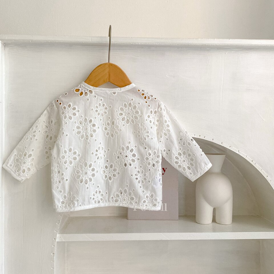 Wit geborduurd kanten vestje voor babymeisje