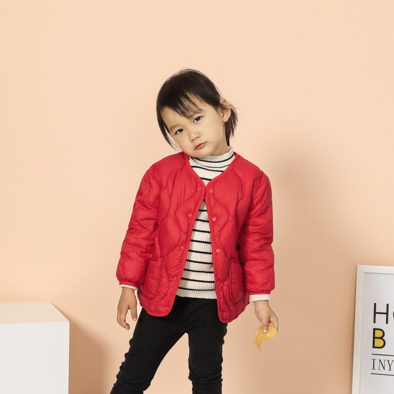 Lichtgewicht gewatteerd donsjack met ronde hals voor meisjes