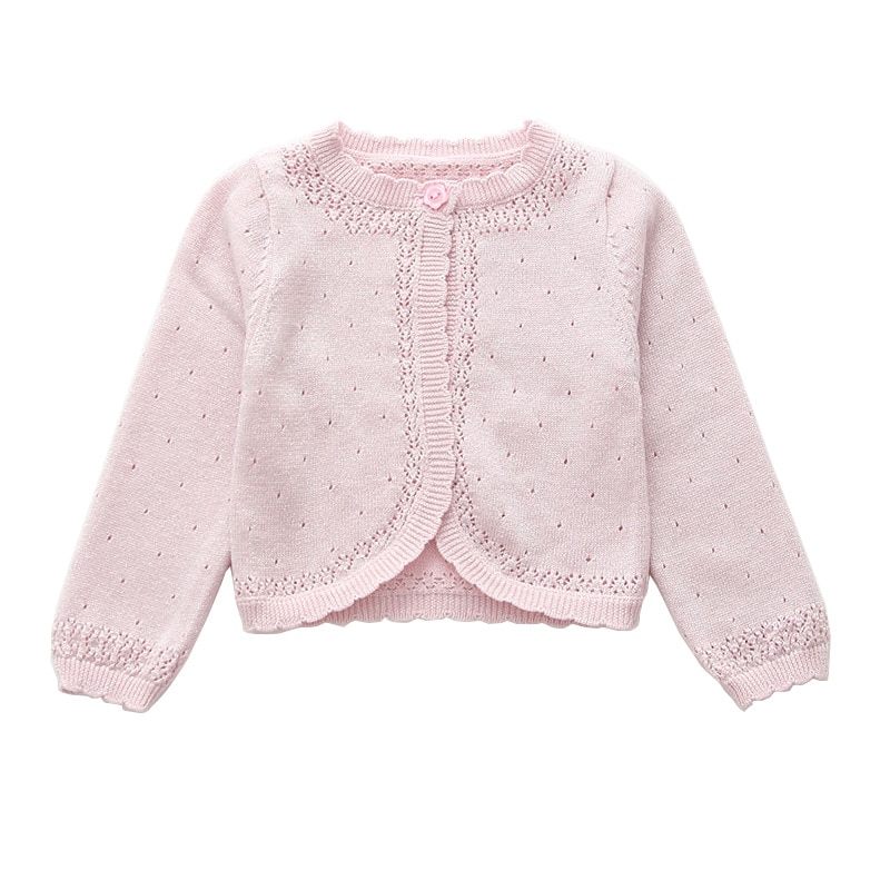 Opengewerkt katoenen vest met lange mouwen en ronde hals voor meisjes