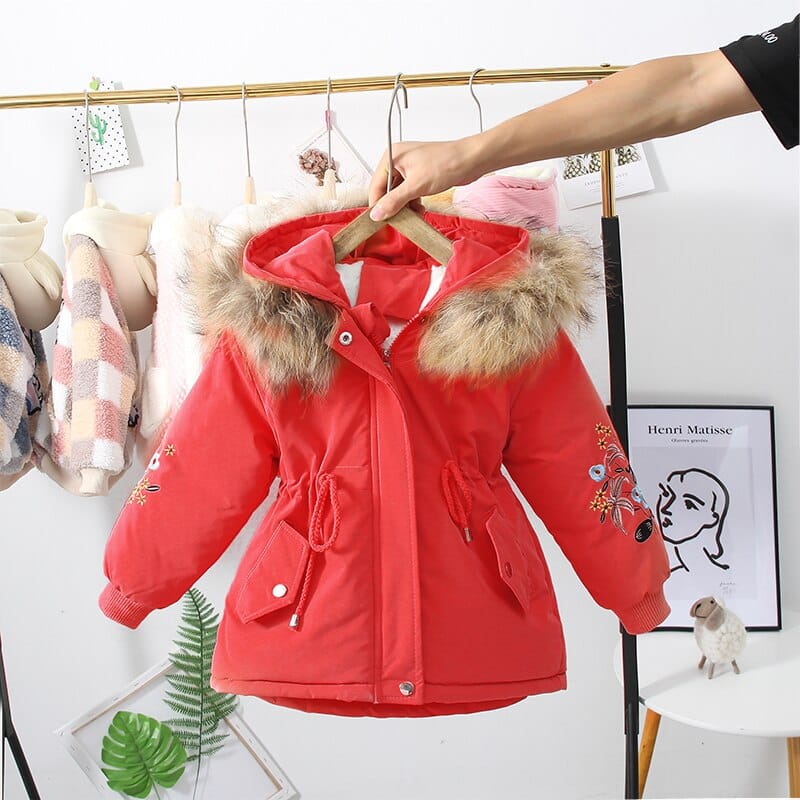 Deze jas met capuchon van imitatiebont voor meisjes zal uw kind warm houden, vooral in de winter. Hij is gemaakt van hoogwaardig katoen dat zowel zacht als ademend is.