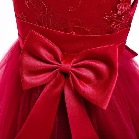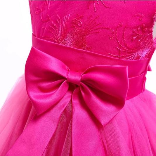 Dit schattige jurkje zal ervoor zorgen dat uw kleine meisje zich de Belle van de ceremonie voelt! De jurk heeft een strikceintuur om de look compleet te maken. Bestel vandaag nog en laat uw kleine meid zich een echte prinses voelen!