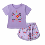 Katoenen meisjeszomerpyjama met eenhoornpatroon