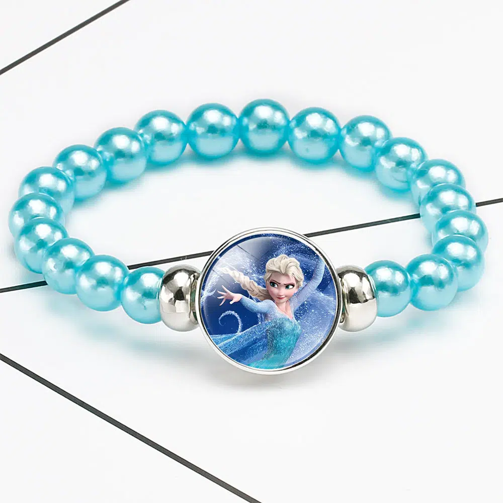 Elke parel is zorgvuldig geselecteerd vanwege haar schittering en levendige kleur, waardoor een verbluffend visueel effect ontstaat. De armband is versierd met een hanger van sneeuwvlokjes, het emblematische symbool van Elsa’s magische kracht.