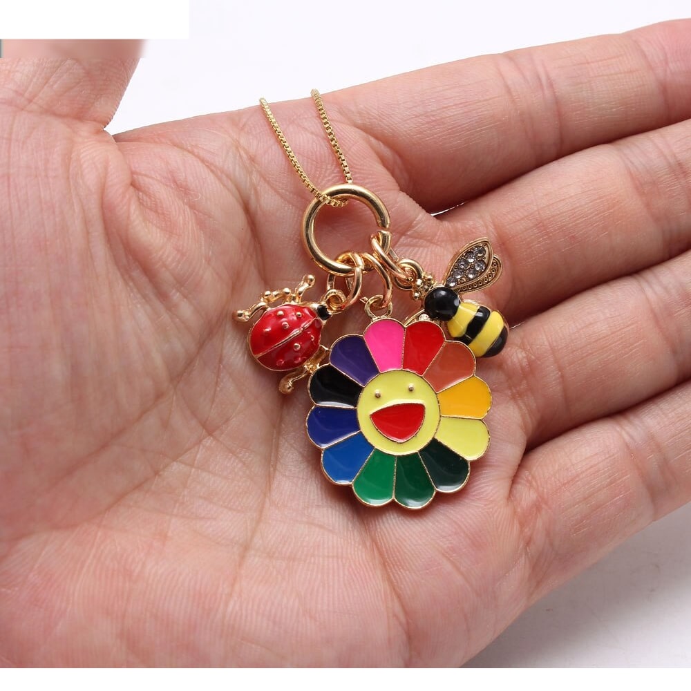 Hanger van zonnebloem voor meisjes met sleutel, bloem en bij