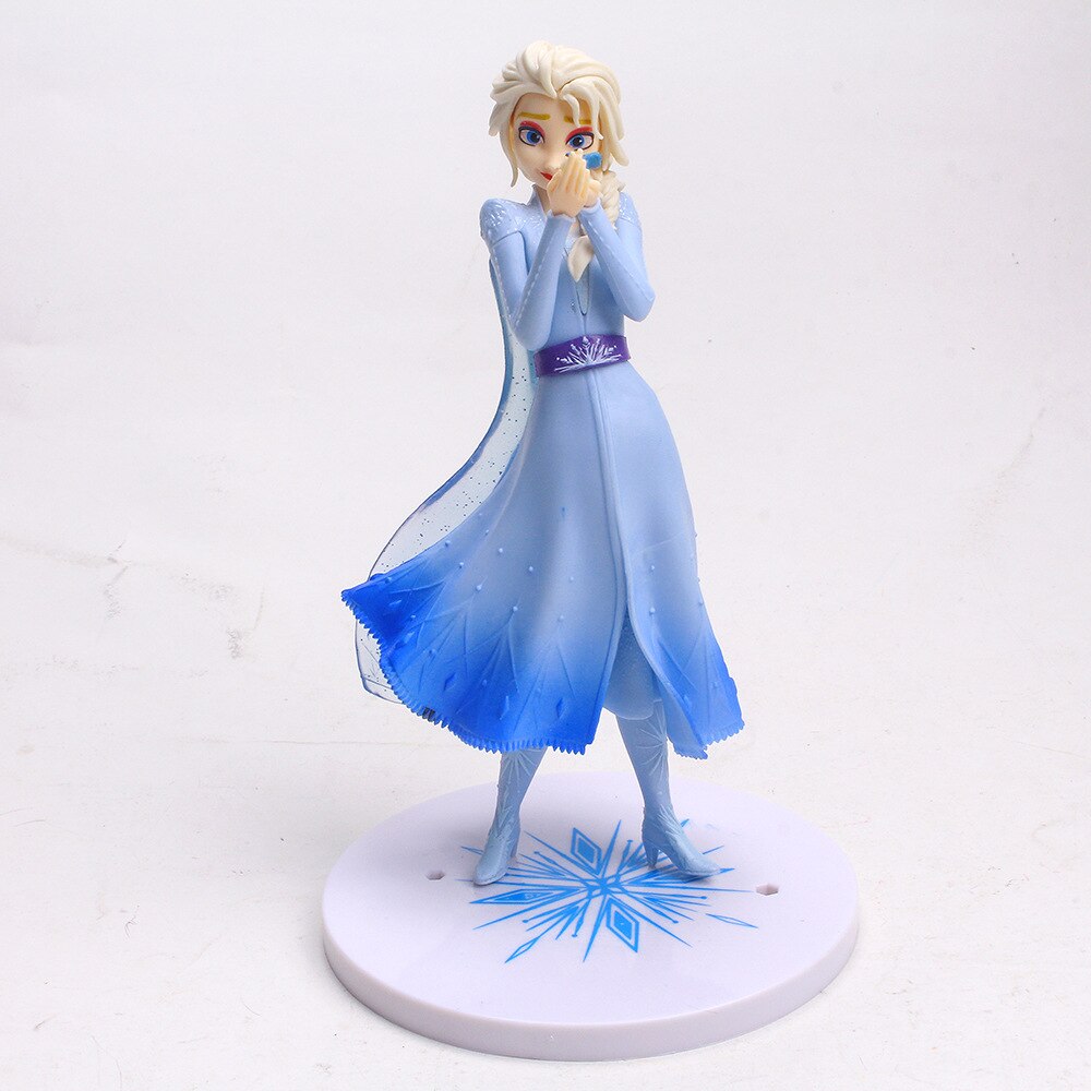 Het Elsa-figuurtje is zorgvuldig gebeeldhouwd om elk aspect van haar uiterlijk natuurgetrouw weer te geven. Haar gelaatstrekken zijn delicaat met de hand geschilderd, waardoor haar sprankelende ogen en zachte glimlach tot leven komen. Haar blonde haar, versierd met sprankelende blauwe lokken, is zorgvuldig gestyled in een ingewikkelde vlecht, die een vleugje verfijning toevoegt aan haar vorstelijke look
