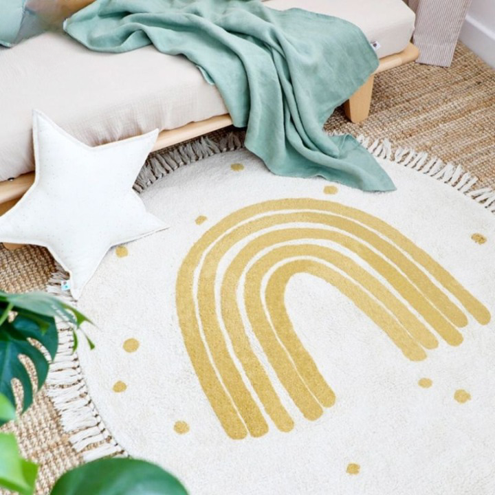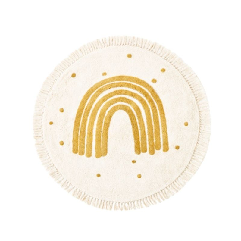 Zacht beige regenboogtapijt met franjes voor meisjes