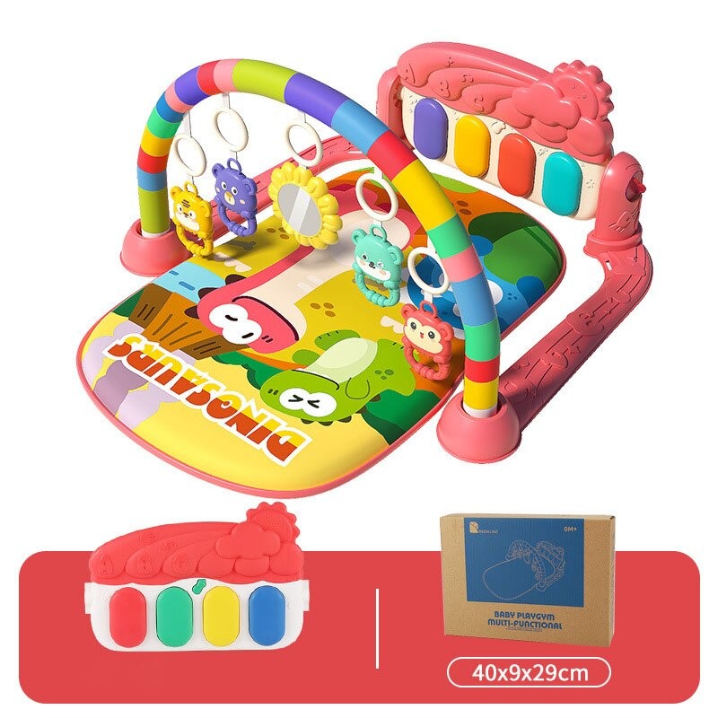 Roze baby muzikaal speelkleed met rechthoekige mat en hangende speeltjes