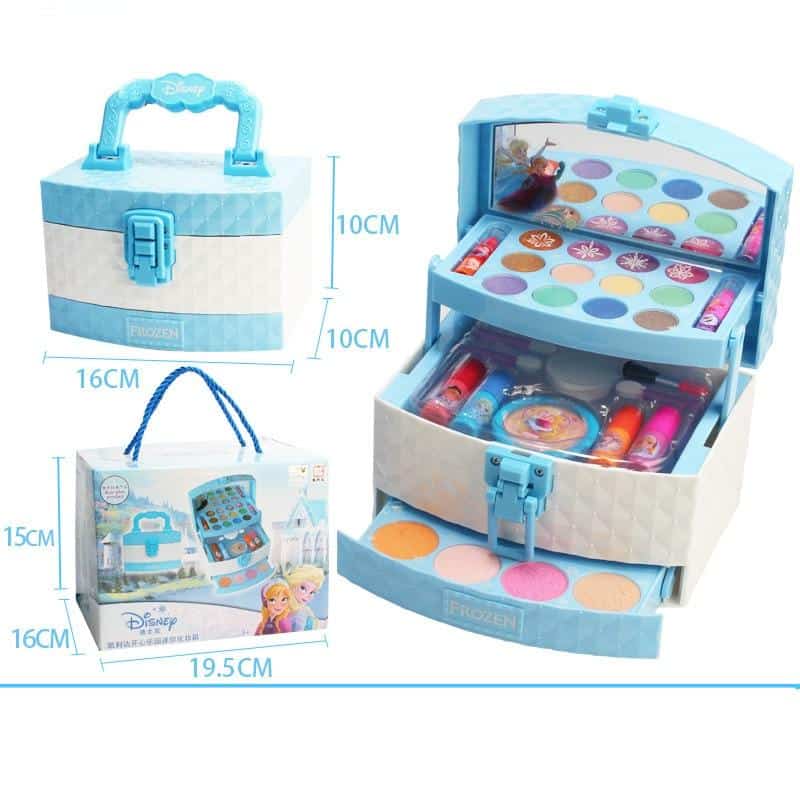 Dit is een geweldig cadeau voor alle meisjes die dromen van schoonheid, make-up en Sneeuwkoningin. Deze doos is zeer compleet, en met verschillende goed georganiseerde vakken heeft alles zijn plaats. Alle producten zijn ontworpen voor kinderen, dus er is geen risico. Alles is gemakkelijk mee te nemen in de doos, dankzij het handvat.