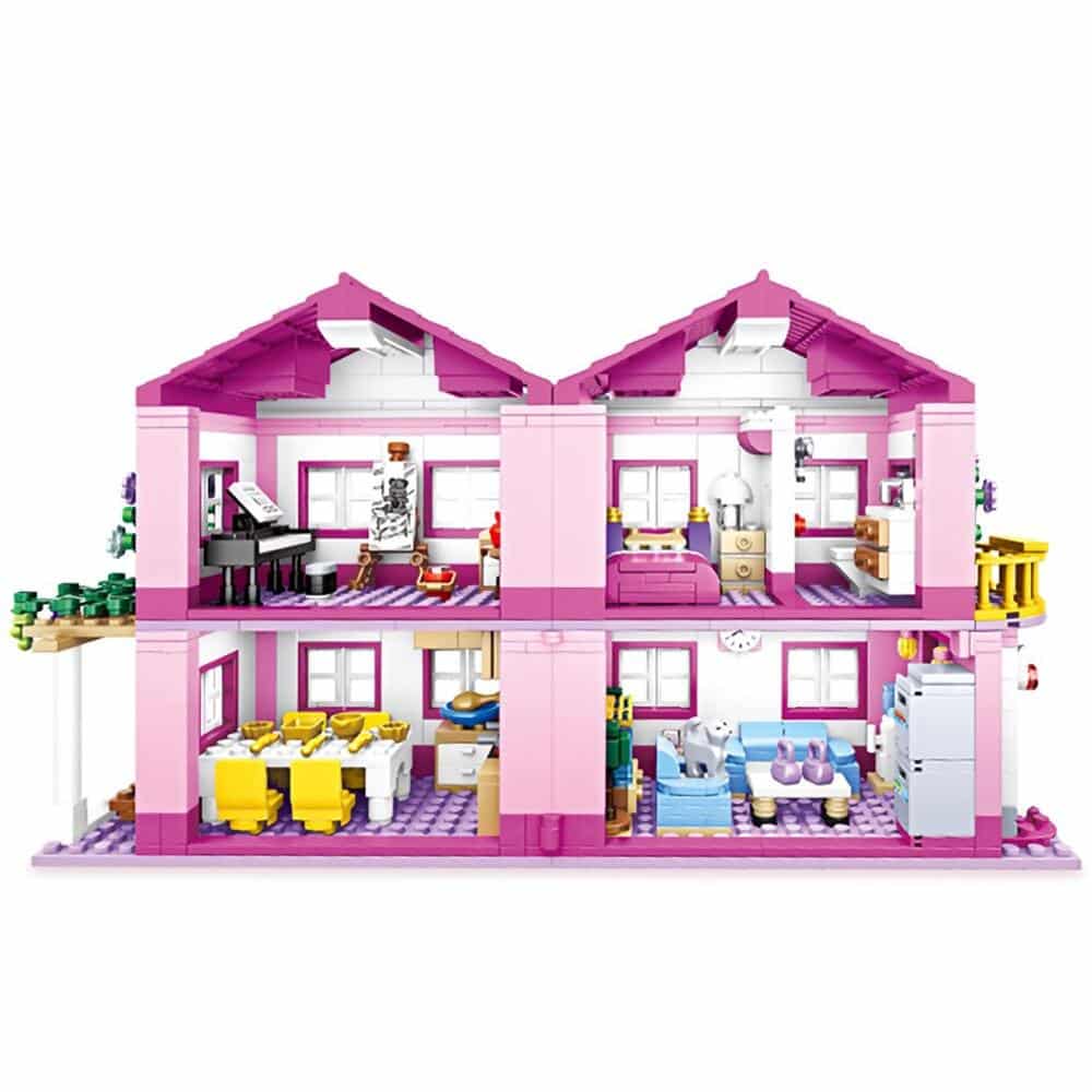Hier is een set bouwstenen voor meisjes. Hij bestaat uit geprefabriceerde elementen die uw kind naar eigen inzicht in elkaar kan zetten, of door de instructies in een patroonboek te volgen. Deze set bouwstenen is speelgoed dat u cadeau kunt geven met Kerstmis of op de verjaardag van uw kleine meid.
