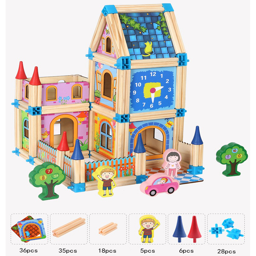 De bouwset bevat alle onderdelen die nodig zijn om het huis in elkaar te zetten, inclusief het dak, de muren en de vloer. De stukken zijn gemakkelijk in elkaar te zetten en vereisen geen speciaal gereedschap of lijm. Uw kind kan dus zijn eigen handvaardigheid gebruiken om een prachtig poppenhuis te maken.