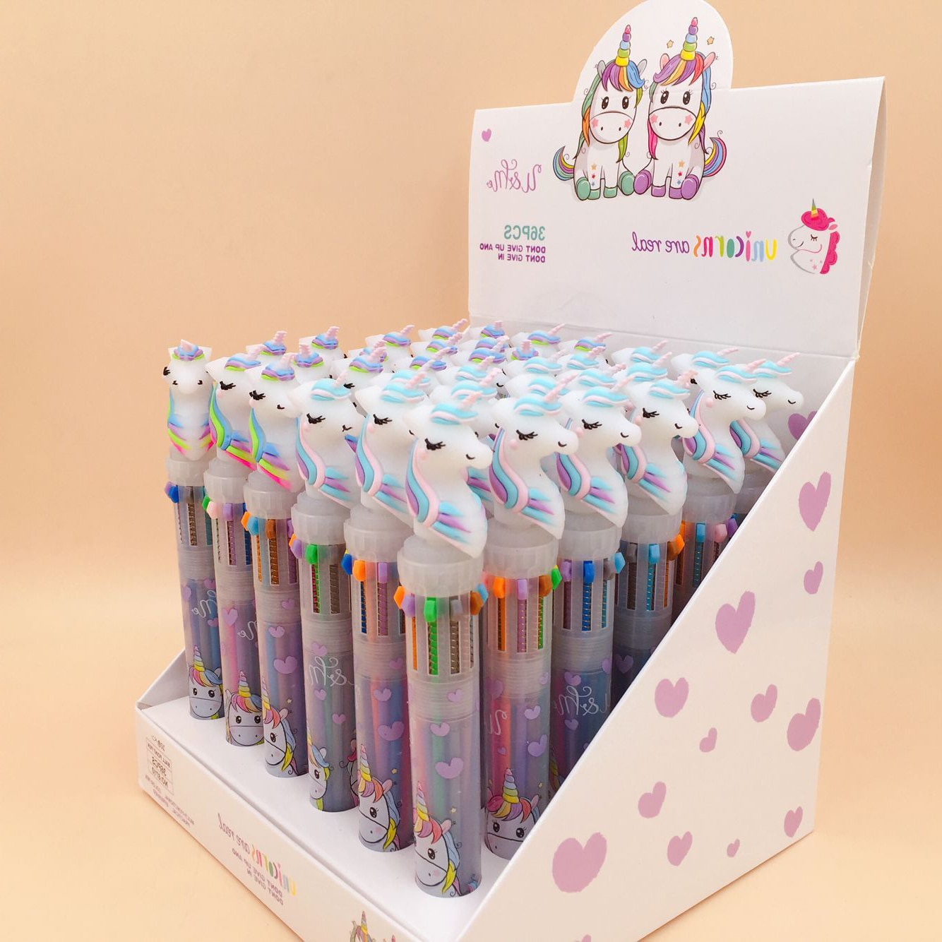 10-kleuren eenhoorn biros voor meisjes met doosje